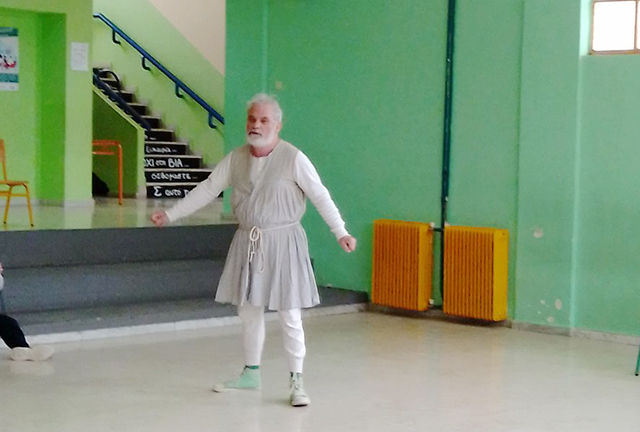 Τα παιδιά μπαίνουν στους ρόλους και παρουσιάζουν μαζί με τον Αριστοφάνη τη Λυσιστράτη, τον Πλούτο και την Ειρήνη.