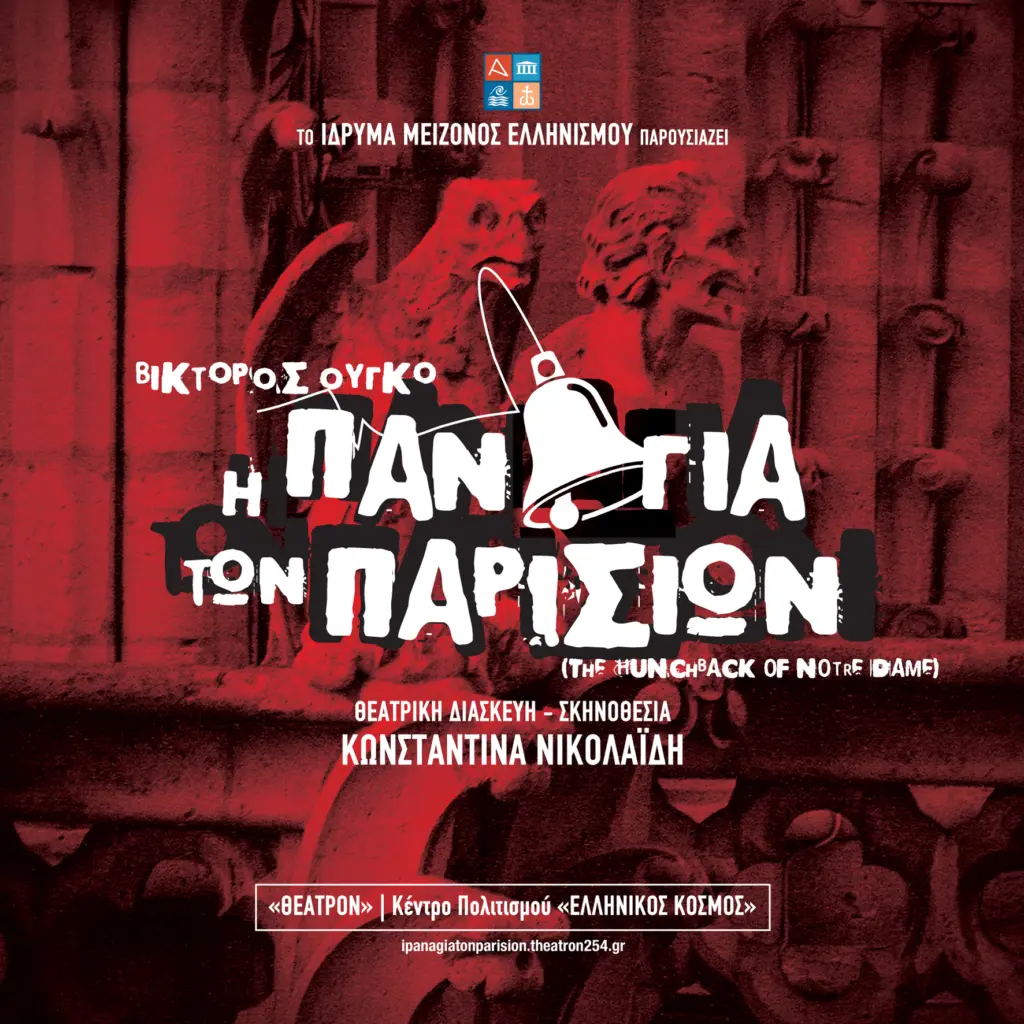 Το Ίδρυμα Μείζονος Ελληνισμού, με παράδοση στις υπερπαραγωγές (βασισμένες στα σπουδαία έργα της παγκόσμιας λογοτεχνίας), παρουσιάζει τη θεατρική περίοδο 2025-2026 το κλασικό μυθιστόρημα «Η Παναγία των Παρισίων», στο «Θέατρον» του Κέντρου Πολιτισμού «Ελληνικός Κόσμος». Μετά την τεράστια επιτυχία που σημείωσαν «Οι Άθλιοι» για δύο συνεχείς χρονιές, η Κωνσταντίνα Νικολαΐδη αναλαμβάνει τη σκηνοθεσία ενός ακόμα δημοφιλούς αριστουργήματος του μεγάλου Γάλλου συγγραφέα.