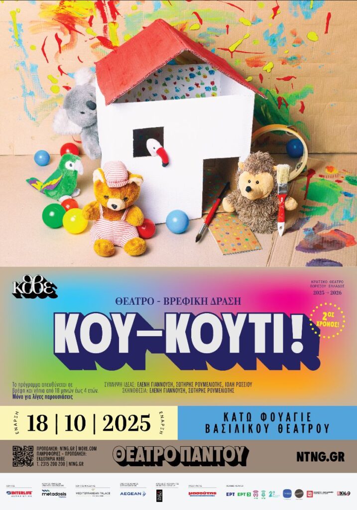 Μετά τη μεγάλη επιτυχία που σημείωσε, την περσινή σεζόν, η θέατρο- βρεφική δράση του Κρατικού Θεάτρου Βορείου Ελλάδος «Κου-κουτί!», σε σύλληψη ιδέας Ελένης Γιαννούση, Σωτήρη Ρουμελιώτη και Ιόλης Ρώσσιου και σκηνοθεσία Ελένης Γιαννούση και Σωτήρη Ρουμελιώτη επιστρέφει.